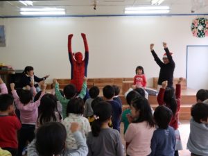 そして、なんと今月もスパイダーマン登場!「PPAP」の音楽に乗せてダンスをみんなで踊りました。