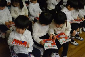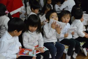 青梅幼稚園の子ども達のために特別にプレゼントを持ってきてくれたサンタさん。ここにも「君は愛されているんだよ」というメッセージが込められています。