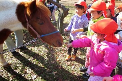 年中さんは「ねんころかめ」を踊りと振付で表現しました。いつもはきゃぴきゃぴした感じで楽しんでいたのですが、今日は落ち着いた雰囲気が出ていたようです。緊張をしていたというよりも、ごくごく普段通り。お面が落ちてしまった時にもお友達がすかさず拾って頭にかぶせてあげていました。大勢の大人の前で舞台の上で、視野の広さは大したものでした。