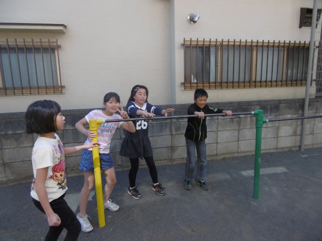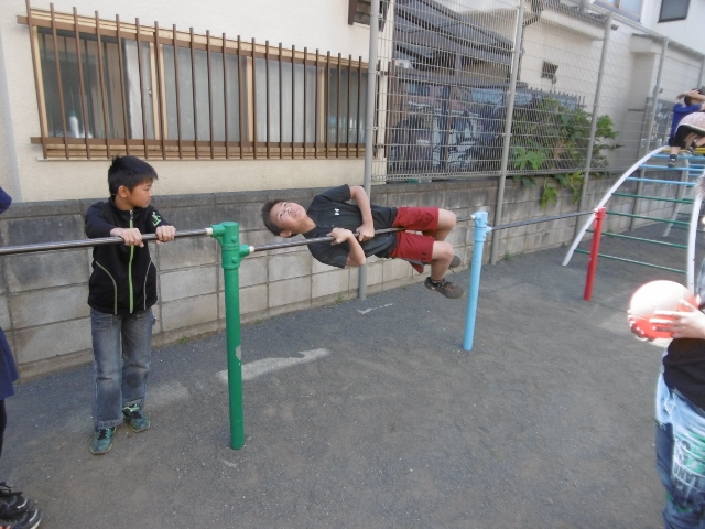 ブランコを片付けるのは年長さんの証です。