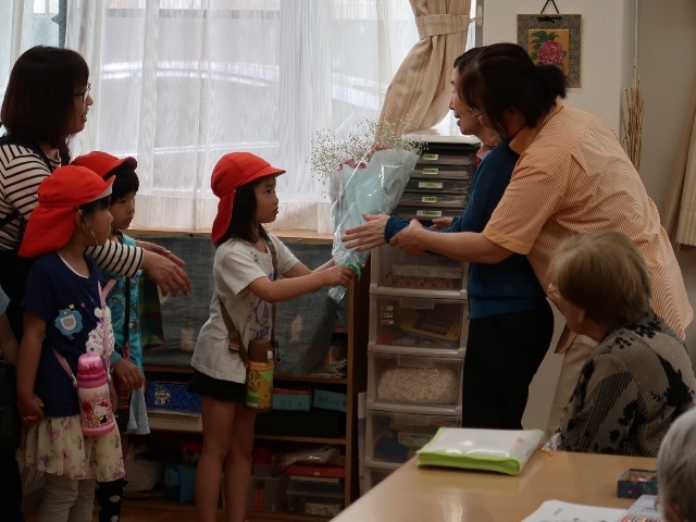 花束を渡す時、カードを渡す時、歌を歌っている時、こども達を見ていると、とても嬉しそうでした。そこにいる大人の人たちが自分たちの方を見て喜んでいるのを感じたのでしょう。