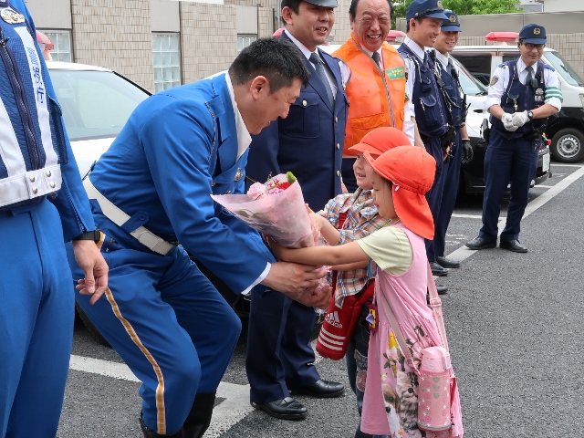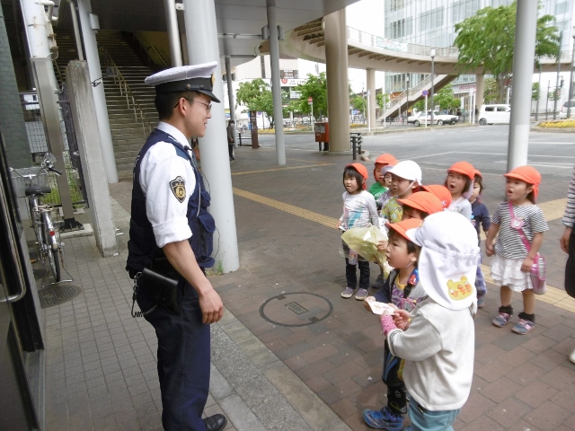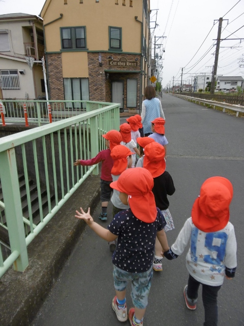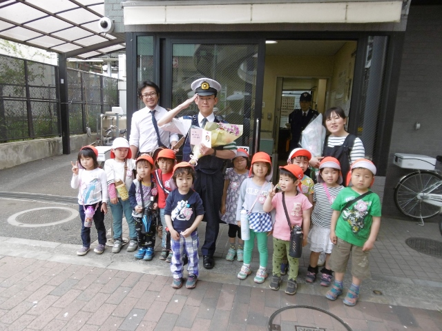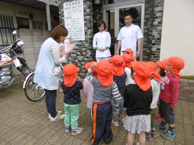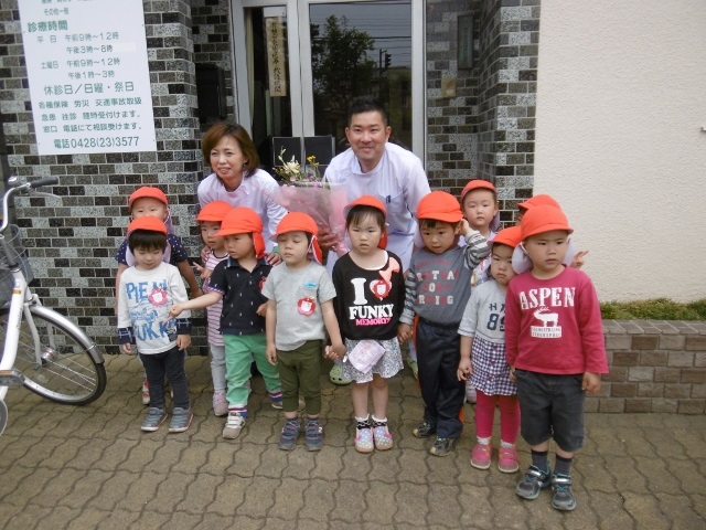 かわいらしいお花を各家庭から持ち寄り、年少さん:伊東接骨院、年中さん:河辺駅前派出所、東急、年長さん:河辺デイサービスセンターわかくさ、青梅警察署へカードと花束を持っていきました。
