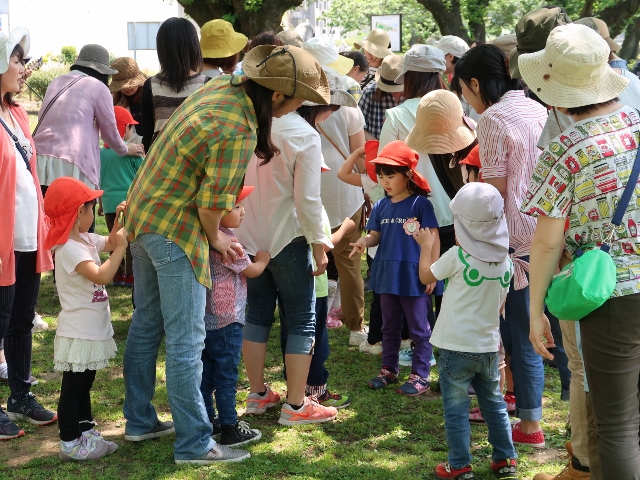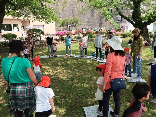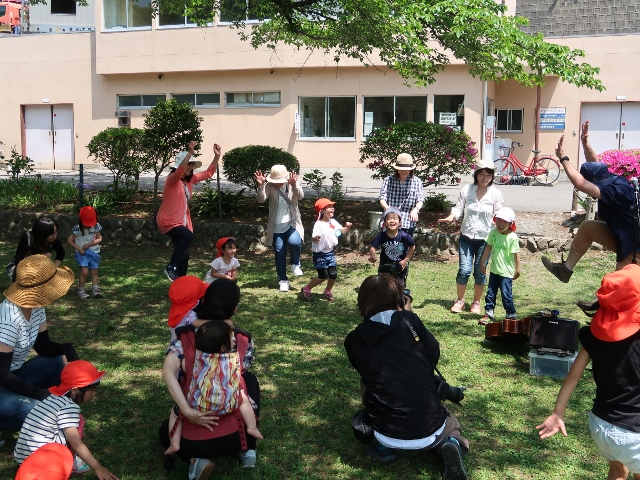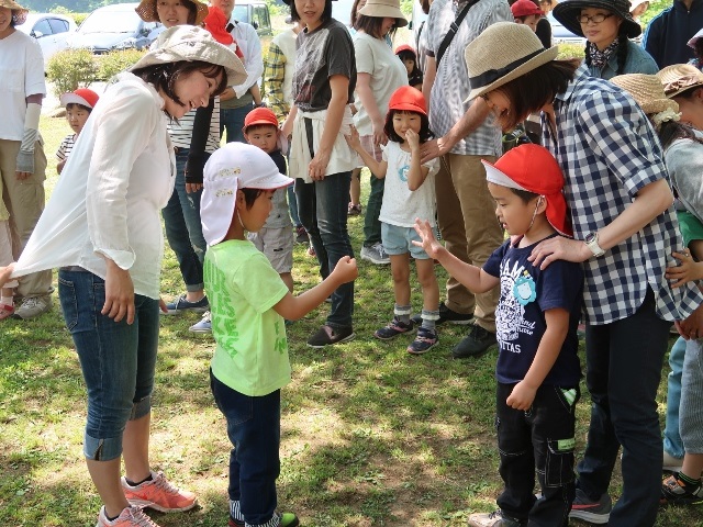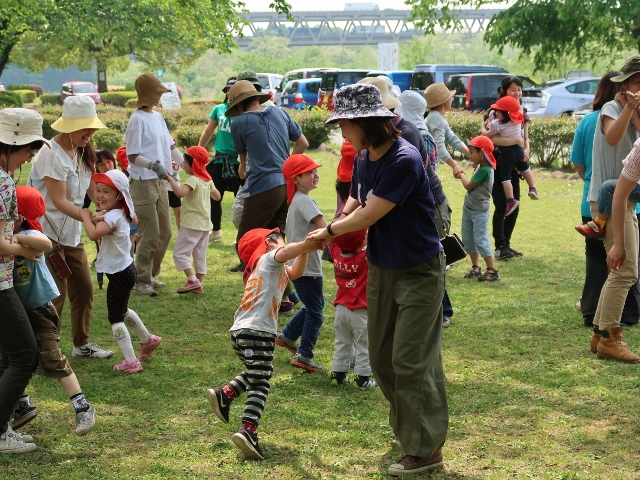 全体レクで恒例のじゃんけん列車。今回は途中に「友達ロケット」を組み合わせました。4組の親子が連り、先頭の親子から順に発射して戻って来るのですが、その時、「こっち!こっちだよ!」「○○ちゃーん!」と呼び合う声が自然と聞かれました。ちょっとしたこと、といえばちょっとしたことなのかもしれません。けれど、私はとてもうれしく感じました。あたたかく戻れる場所があるって大事ですよね。そうした基地があるからこそ、こども達は思い切って外へ向かっていける。その様子がゲームの中で自然と表れていたように思います。本当にみんな優しい方々だなぁと、ちょっと感動してしまいました。