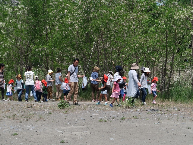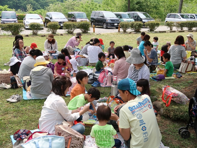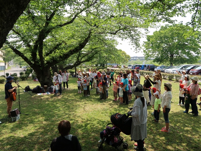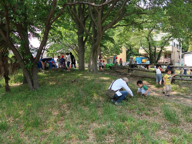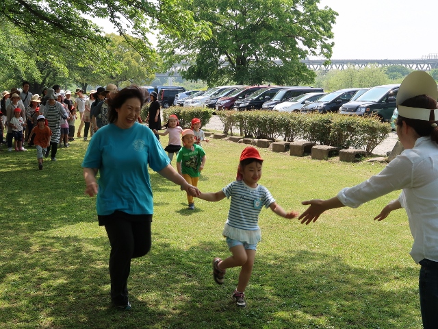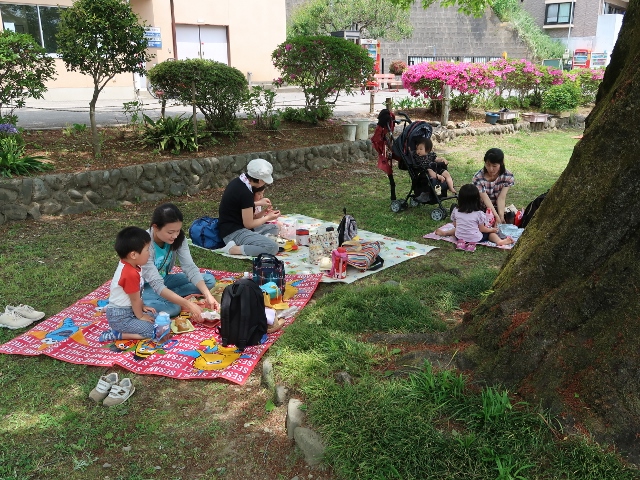 河辺下の公園で楽しいひと時を過ごし、親睦を深めることができました。新緑が美しいいこの季節にこども達の笑顔もきらきら輝いていたようにみえましたね。