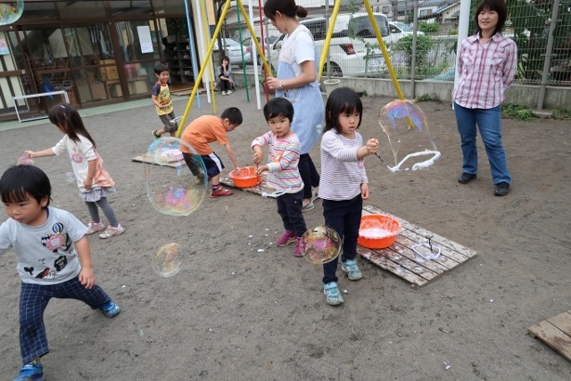 雨が降らなかったこともあって、シャボン玉が外でできたことは大きな恵みでした。活動の幅がぐっと広がっていたように思えました。