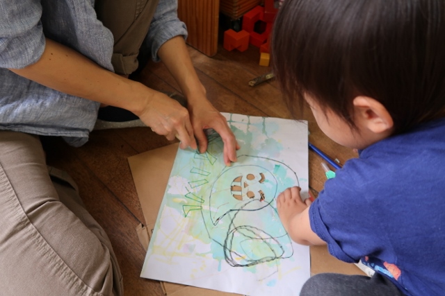 製作していて感じたのですが、みなさん落ち着いた様子で制作に取り掛かっていましたね。お母さんたちが落ち着いているから、こども達も落ち着いているように見えました。カッターナイフを使用するにあたって危なくないように注意してみていましたが、危険な場面は無かったように思います。