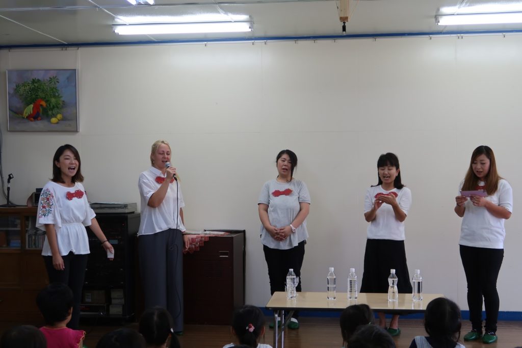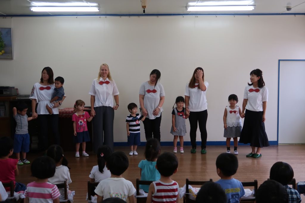 さて、お母さんたちの出し物はまず、「ロシア語で歌おう ハッピーバースデイ トゥ ユー」から始まりました。「ハッピーバースデイ」の歌は何回も聞いたことはあるかもしれませんが、ロシア語ではなかなか聞いたことはないと思います。「うん。似てる似てる」と、こども達から謎めいた反応があったのが面白かったです。