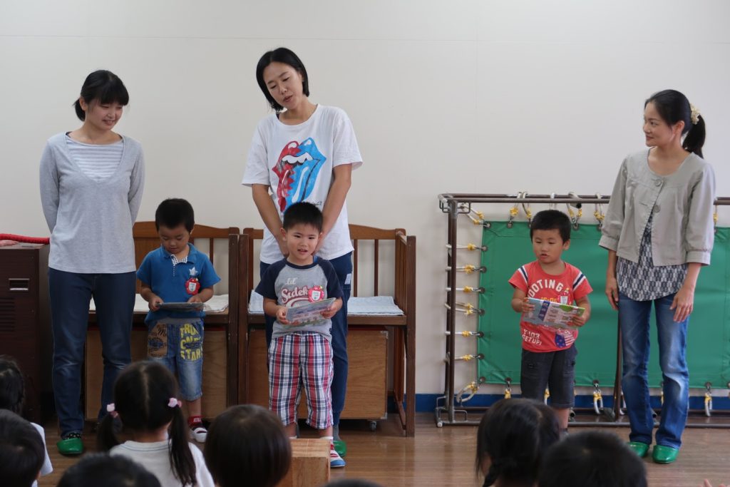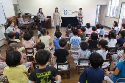今月はりす組さん(3歳児クラス)から3人のお友達がみんなからお祝いしてもらいました。