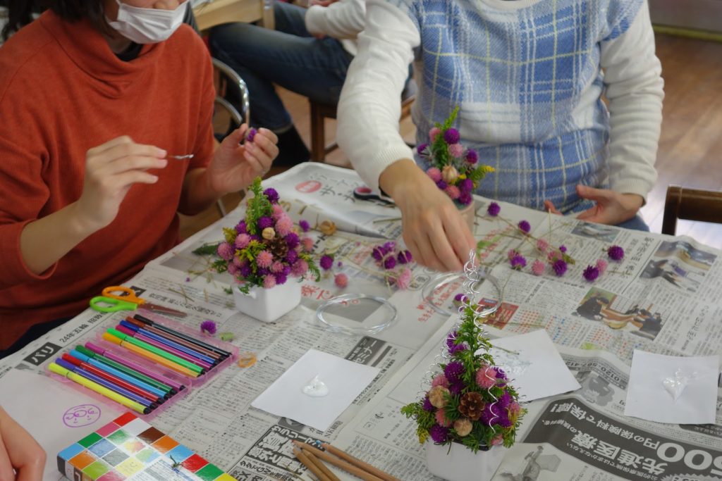 今日はスカッと晴れた気持ちの良い日でした。クリスマスを迎えようと、つくし組でもドライフラワーを使用して可愛らしいツリーがたくさんできていました。