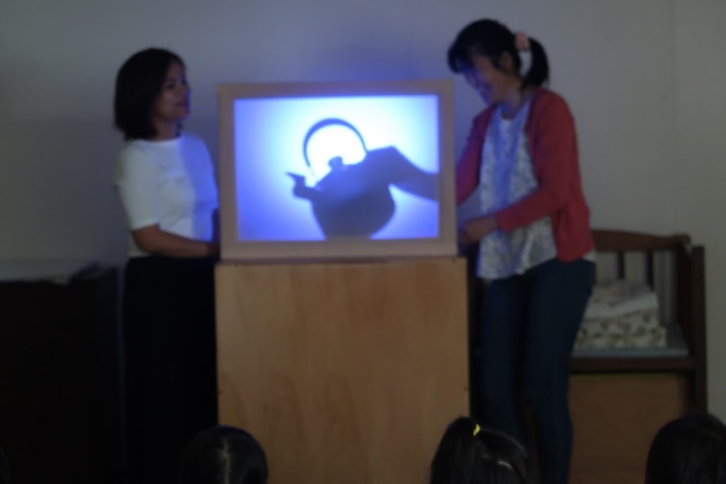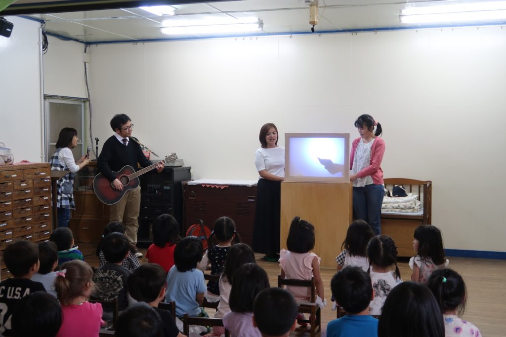 お母さん達の出し物は影絵クイズ。回転すると形が変わる面白さにみんなくぎ付けでした。そしてその後は「ハッピーバースデイ」の歌をタガログ語でお母さん達が歌ってくれました。本当に心のこもった楽しい時間をどうもありがとうございました。(ま)
