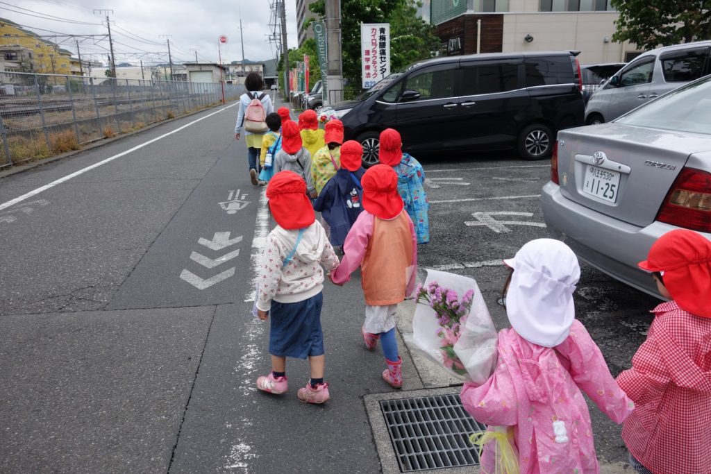 今日は接骨院、駅前派出所、東急デパート、河辺デイサービスセンター、青梅警察署へ各学年分かれて行ってきましたが、どこへ行っても笑顔で受け入れてもらえました。特にご高齢のおじいちゃん、おばあちゃん達からは本当に何度も何度も感謝されました。道ですれ違っても「いいねぇ。こどもたちはいいねぇ。」と話しかけられました。これはこども達だからこそ、ですよね。周りの人を明るくする力をこども達はもともと持っているんです。花束を持つこどもの姿は見る人の心を穏やかにしてくれます。