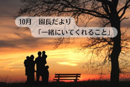 新年度が始まって、こども達の遊んでいる姿に目を奪われることがあります。 花も草も勢いよく伸びている中なので、余計にこども達の活動も生き生きとして見えるのかもしれませんね。 遊びの内容はそこまで多種多様というわけではありません。 鬼ごっこ遊び、砂場あそび、泥んこ遊び、水遊び…同じような遊びを毎日くり返しくり返し…。 でもこども達の目はきらきらと輝いているのです。 もう少し違う刺激を与えてみようかしら…なんて大人は思ってしまいますが、どうやら その必要はなさそうです。 ある子と一緒に何回も何回も同じような砂で作られた御馳走を食べている時、そろそろ違う場所に移って他の子の 様子も見ようかなと思ったのですが、あまりにも一生懸命作ってくれるので、もう少しと、踏みとどまっていると 、くり返しの行為に浸っているその子の世界にハッとふれた気がしました。 でも次の瞬間、私を置き去りにして水場へ走って行って違う遊びに移っていました。 私は私の方から去らなくて良かったと思うと同時に、少し私のこども達に対する世界が広がったという得した気分 になりました。