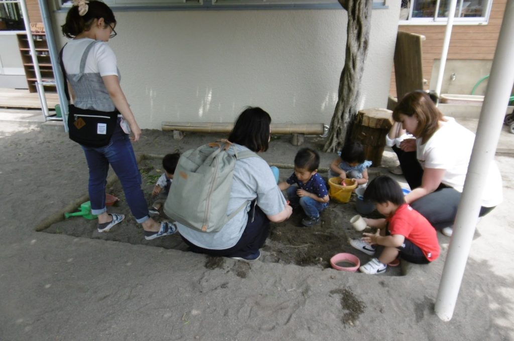 園児たちは若草公園へ遊びに行っていたので園内はつくし組の親子だけ。