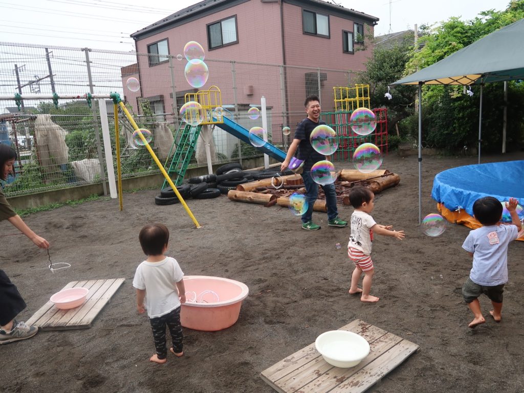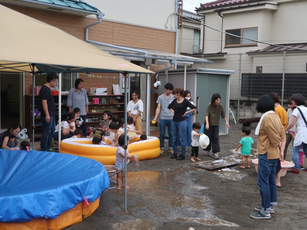来週はプール遊びをしようと考えております。大きなプールの周りには今日のような水遊びができる物も用意しておきますので、みなさんあそびに来てくださいね。