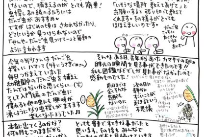 私が初めて見たときはまだ小さな赤ちゃんでした。お姉ちゃんとそっくりなお顔で、どんなお姉さんになるんだろう、と思ったのを覚えています。入園した時はお姉ちゃんが虫嫌いで、部屋に入ってくる虫がいるとぎゃぁぎゃぁ騒いでいたので、どうかなぁ…と思いました。が、全然そんなことはなく、お姉ちゃんよりもしっかりしているのかな、と。でもお家では一番甘えん坊なんですって。お誕生日おめでとう。
