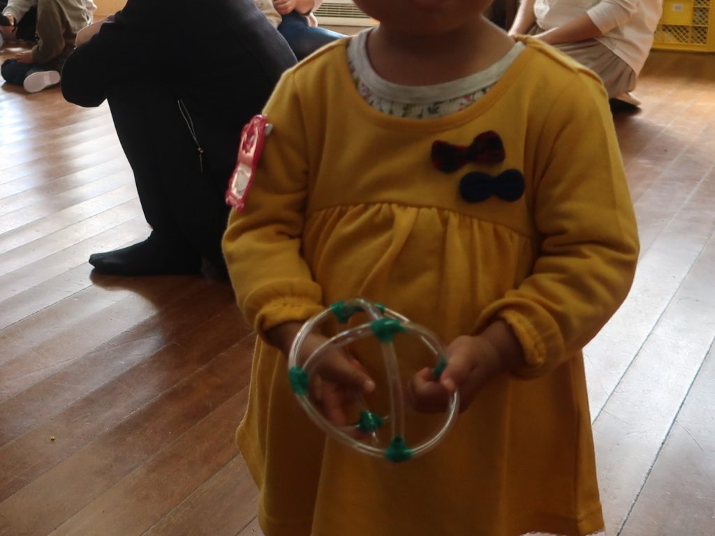 今年のころころ遊びはチューブで輪を作り、ボール状になるように組み合わせたものを作りました。それぞれポンポン投げたり転がしたりして遊んでいましたね。