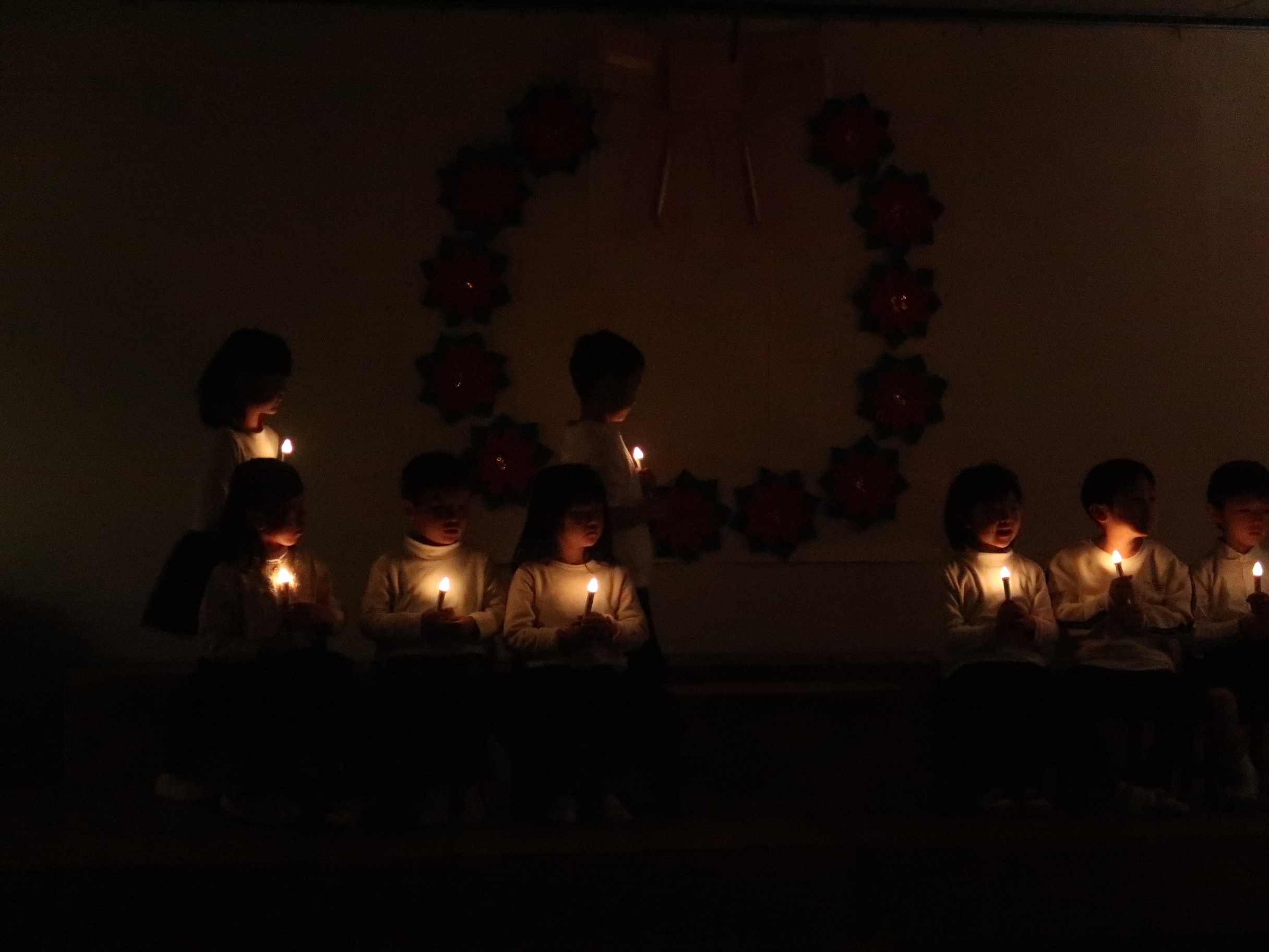 キャンドルサービスに始まり、各学年の出し物、全園児でおこなうページェント(聖誕劇)、お母さん達の奇麗な歌声「きよしこのよる」、先生たちの朗読劇「くつやのまるちん」、ハプニングはありつつも、こども達は堂々としていて一人ひとりがとても素敵でした。我が道を行く子、他者をサポートしようとする子、みんなを楽しませようとする子、それぞれの楽しみ方でクリスマスのお祝いをすることができたと思います。それにしても、年長さん達の立派なこと!今日のこの日が、これからを生きていく糧となりますように。