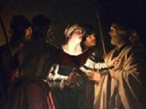 イエス様を心配したお弟子さんの一人ペテロさんは様子をこっそり見に来ます。そこへ町の人達に「おまえ、イエスの仲間じゃないか?」と聞かれ「いいえ。そんな人は知りません」と言ってしまいます。他の人にも「イエスと一緒にいたよな?」といわれ「知りません」、「おまえ、イエスと一緒にいるのを見たぞ」「そんな人私は知りません!!」と3回イエス様のこと「知りません」と言ってしまいます。その後、イエス様は十字架につけられてしまいます。
