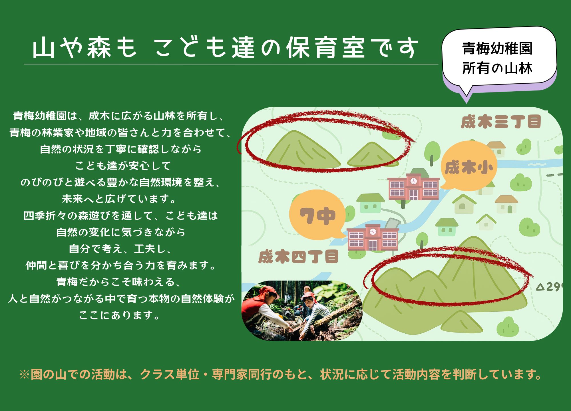 青梅幼稚園は、成木に広がる山林を所有し、