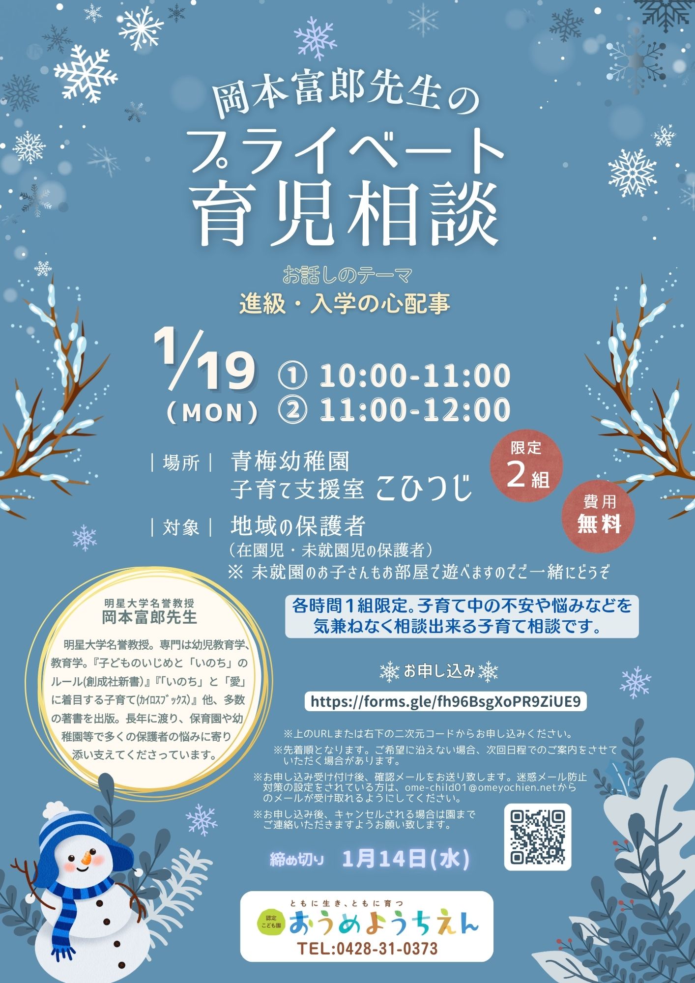※1月14日(水)までにお申し込みください。お申し込み後、キャンセルされる場合は園までご連絡いただけると助かります。
