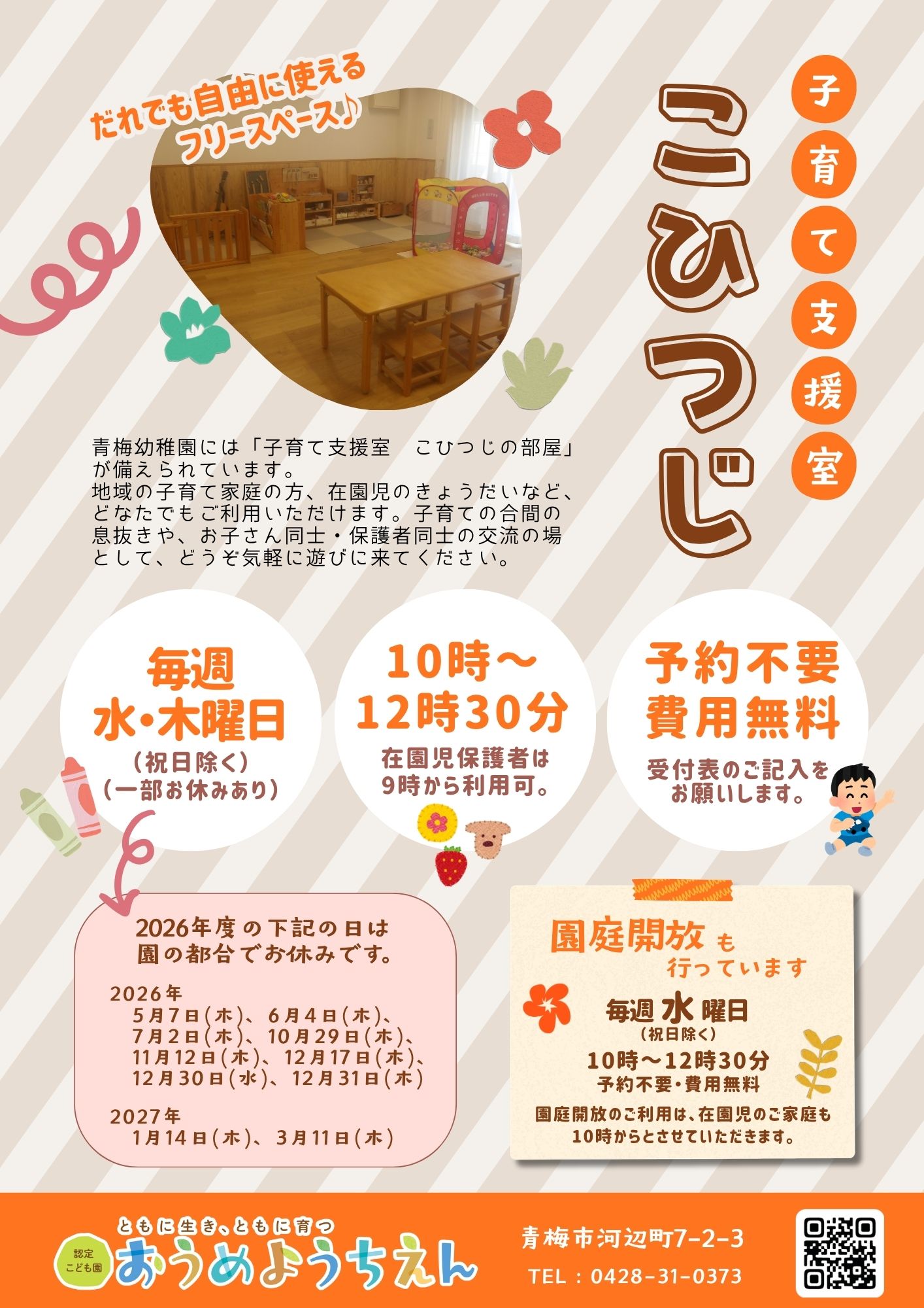 2026年度より子育て支援室「こひつじ」の開室曜日・時間が変更になりました。